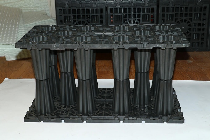 防排水保護(hù)板獨(dú)有的凹凸中空立筋結(jié)構(gòu),可以有效快速的導(dǎo)出地下防水層積水,地下滲出的水順著地下架空層排水板的空間將水引流至四周盲溝,再通過(guò)盲溝后引流至集水坑。從而大大的減少甚至消除了防水層的靜水壓,通過(guò)這種主動(dòng)導(dǎo)水的原理達(dá)到主動(dòng)防水的效果。有效的保護(hù)構(gòu)筑物和防水層,并且抵抗土壤中的各種酸堿和植物的根刺還有防潮降噪的功能。對(duì)土建施工周期及構(gòu)筑物的正常使用和壽命具有重要的作用。